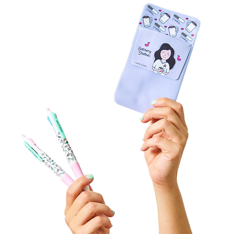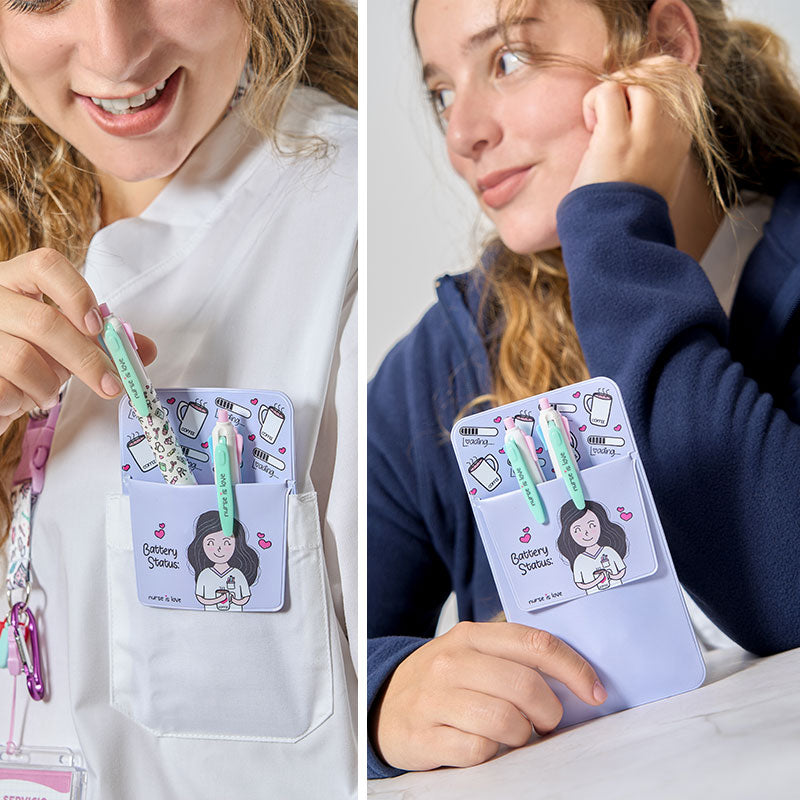 Set 2 Bolígrafos Multicolor + Salvabolsillos Morado